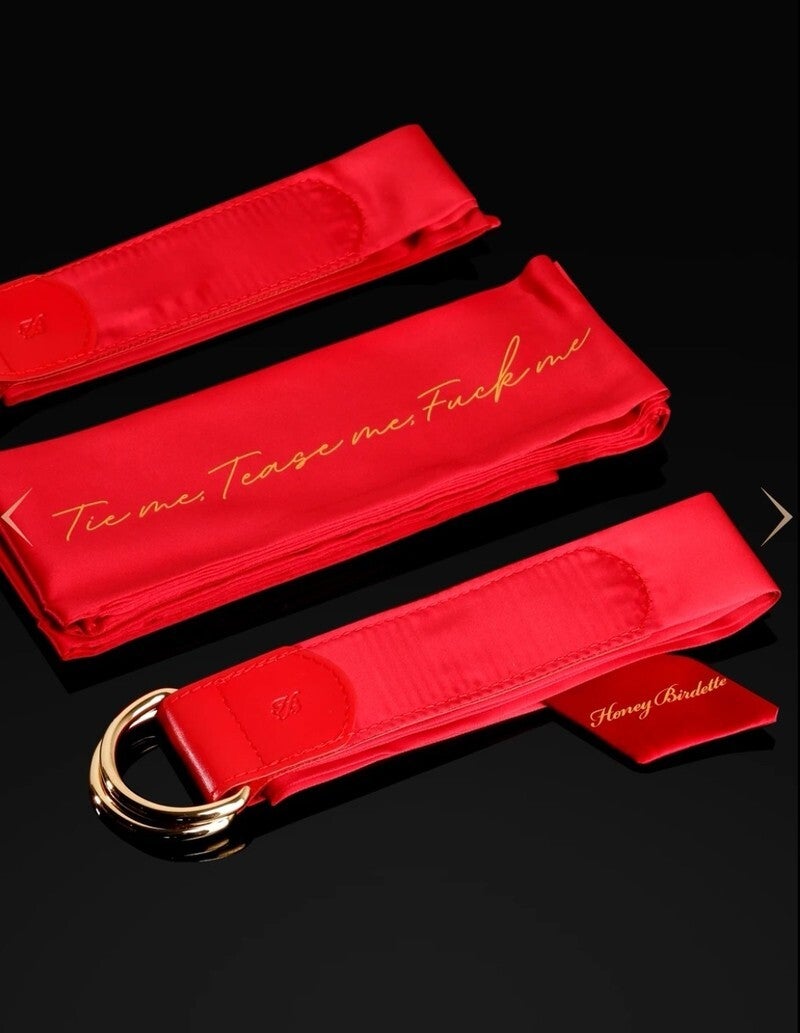 They say actions speak louder than words, so let your ties do the talking. Enhance intimacy and test your techniques with this Deluxe Bondage Kit. Perfect for bedroom bondage or a handy essential for any connoisseur, this limited edition set comes with a blackout blindfold and a pair of satin ties that are inscribed with your lover’s every wish…
