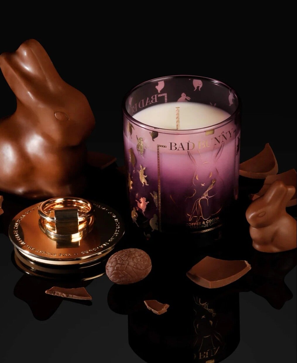 Have you been a bad little bunny? This delicious massage candle will have you bouncing to the bedroom. Bad Bunny is a warm mocha scent featuring notes of dark coffee and decadent cocoa.